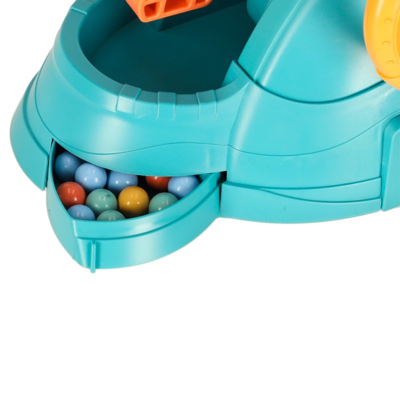 Gra zręcznościowa - głodne żabki. Każdy gracz musi sterować kolorową żabką i postarać się zjeść jak najwięcej kulek. Aby wygrać grę trzeba odpowiedniej strategii i sporej ilości zręczności. Tworzywo: plastik. Wiek: 3+. Wym. planszy: 30,5 cm x 6,6 cm.