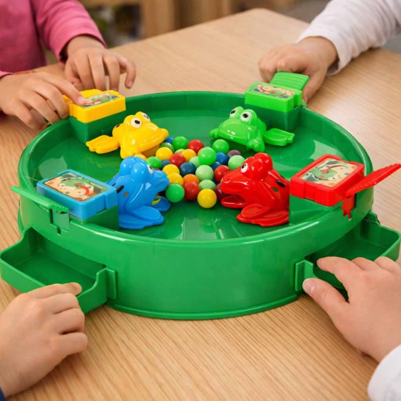 A na czym polega zabawa? Jej zasady łatwo zrozumieć - każdy z graczy wybiera jedną żabkę, następnie musicie wsypać kulki na środek planszy i wciskając listki spróbować złapać ich jak najwięcej! Gdy wszystkie kulki zostaną zebrane, podliczcie je - wygrywa osoba z ich największą ilością.