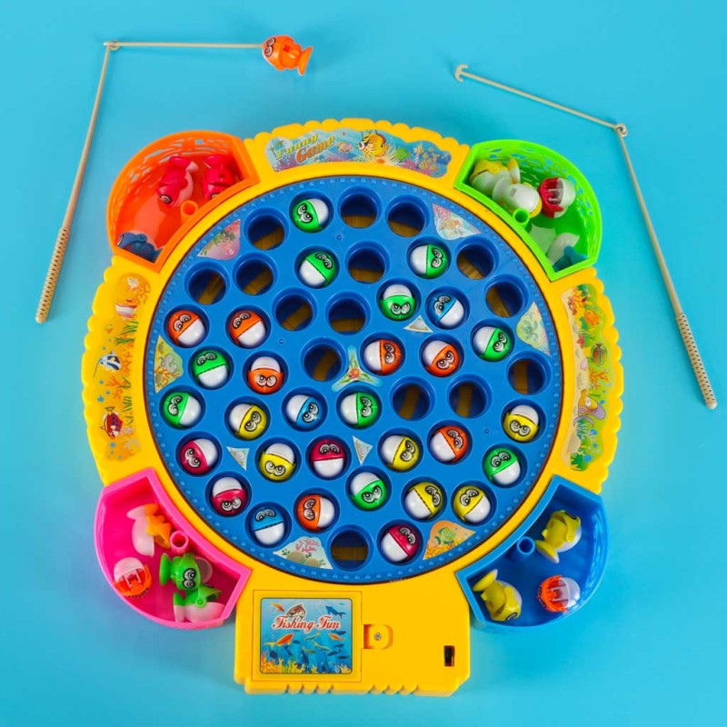 Wygrywa ten, kto schwyta na wędką jak najwięcej rybek, które pływają - kręcą się po całej platformie.