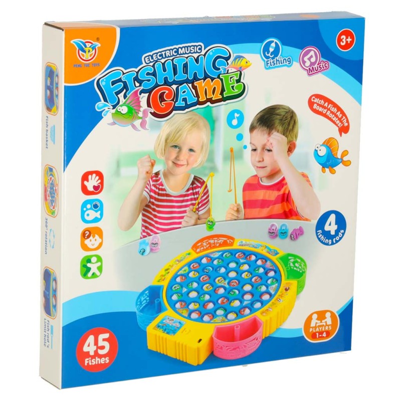 Fantastyczna gra dla całej rodziny polegająca na łowieniu rybek. skład: 45 rybek, podstawka na rybki, 4 wędki. 3 baterie AA 1,5 V (brak w zestawie). Podstawa na rybki: 32cm x 4cm. Rybki: 3cm x 2cm