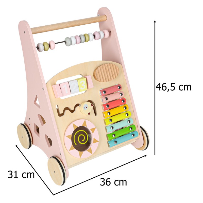 Drewniany pchacz z klockami to zabawka wielofunkcyjna, stworzona z myślą o radosnym odkrywaniu świata. Cymbałki pozwalają dziecku poznawać dźwięki, sorterek kształtów rozwija spostrzegawczość, a kolorowe klocki wspierają rozwój zręczności i kreatywność. Ten wyjątkowy pchacz z klockami zamienia codzienną zabawę w przyjemną naukę - wspiera rozwój sensoryczny, budzi emocje i daje dziecku satysfakcję z każdego, nawet najmniejszego kroku.
