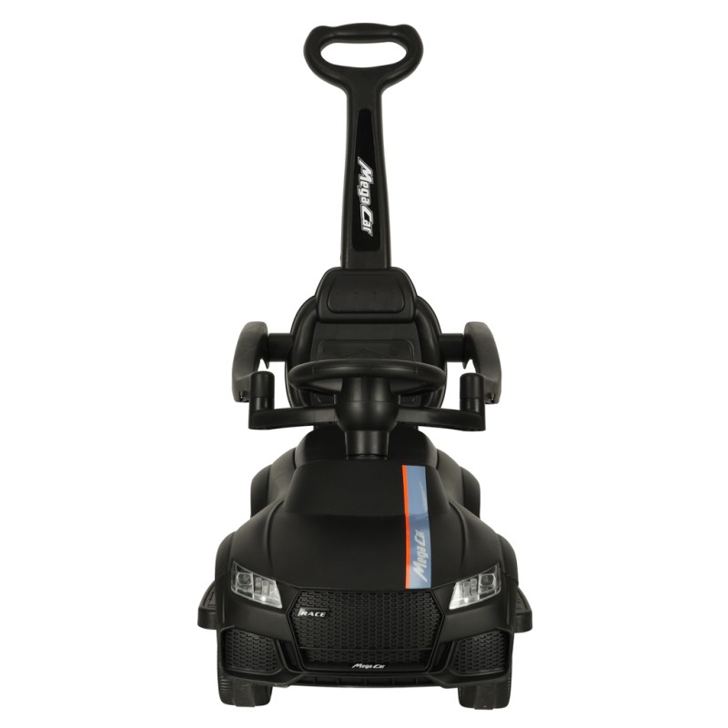 Tworzywo: plastik. Czarny. Wiek: od 12 miesiąca. Maks. obciążenie: 23 kg. Zasilanie: 3x bateria AA (brak w zestawie). Szerokość samochodu: 31 cm. Długość samochodu: 64 cm. Długość samochodu od maski po rączkę: 85 cm. Wysokość od rączki w dół: 84 cm. Wysok