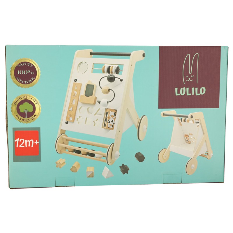 Oferowany pchacz drewniany ma wbudowane zabawki edukacyjne, które pozwolą dziecku na zabawę nawet, gdy nie będzie miało ochoty stawiać kolejnych, trudnych kroków! Dzięki temu pchacz stanie się ulubioną zabawką Twojej pociechy! Maluch otrzyma mnóstwo zabawy, a Ty pewność, że zabawa zostanie połączona z dbaniem o prawidłowy rozwój maluszka.