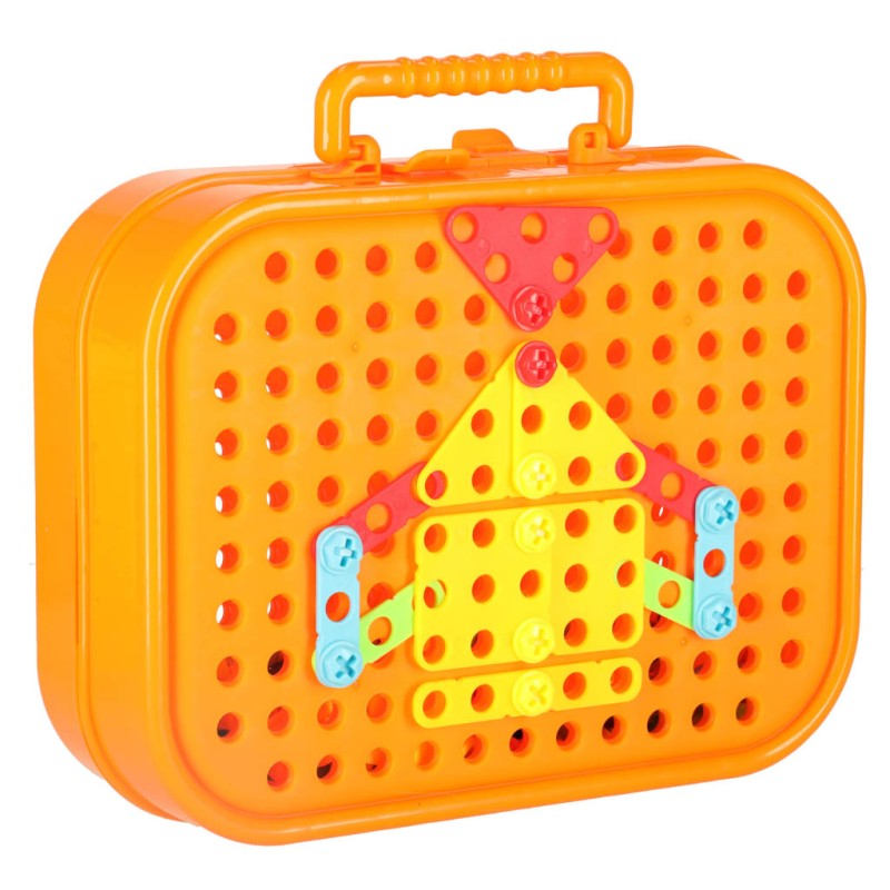 Edukacyjny zestaw w walizce z wkrętarką. Polega na wkręcaniu różnych klocków do tablicy i utworzeniu obrazu. Zabawa rozwinie kreatywność. Zestaw składa się ze 181 elementów. Zasilany bateriami 2x AA 1,5V (brak w zestawie). Wymiary: 28,5x21x9cm.