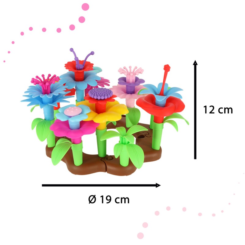 Zestaw klocków kreatywnych, który pozwala na zbudowanie własnego kwiatowego ogrodu! 175 klocków pozwala na dowolne łączenie elementów. Zabawa rozwija kreatywność i zdolności manualne. Tworzywo: plastik. Wymiary zbudowanego ogrodu: 36x36x20 cm.