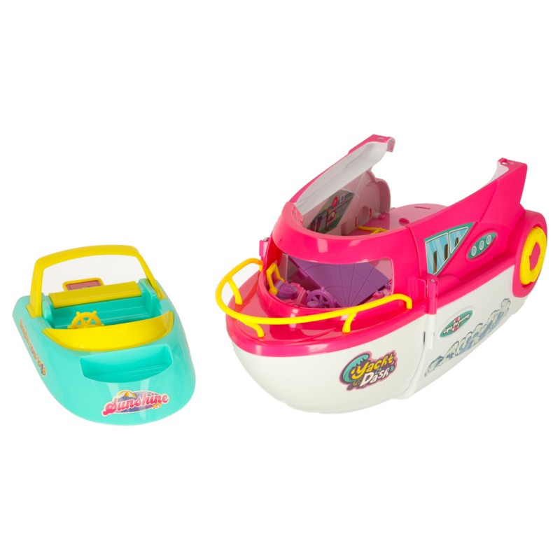 Zabawkowy rozkładany jacht to kolorowa, pomysłowo zaprojektowana łódź stworzona z myślą o dzieciach, które uwielbiają tworzyć własne historie. Ten rozkładany jacht zachwyca dopracowanymi detalami, ruchomymi elementami i solidną konstrukcją, a dołączona motorówka, laleczka i deska surfingowa otwierają przed dzieckiem świat różnorodnych wodnych przygód. Jacht idealnie sprawdzi się jako zabawka dla każdego malucha - jej rozkładana konstrukcja pozwala rozpocząć zabawę od razu, a dołączona lalka dodatkowo uatrakcyjnia każdy scenariusz.