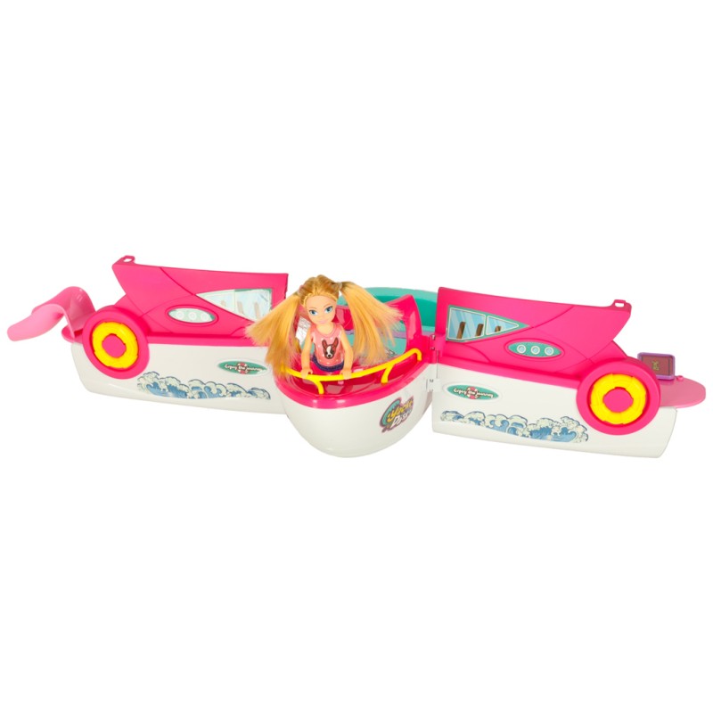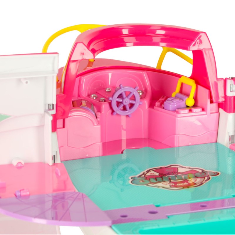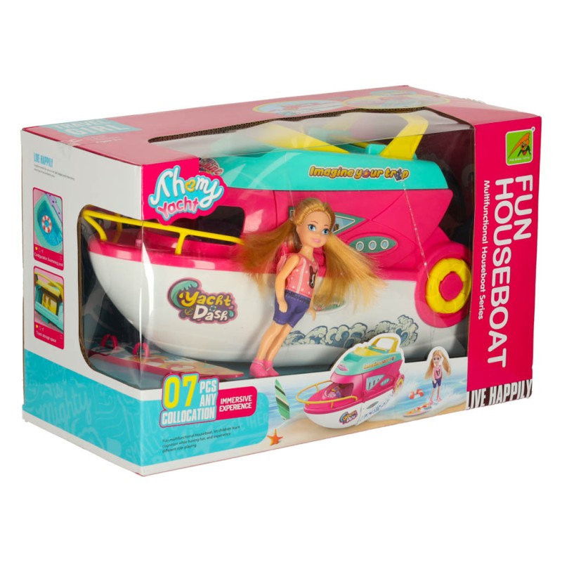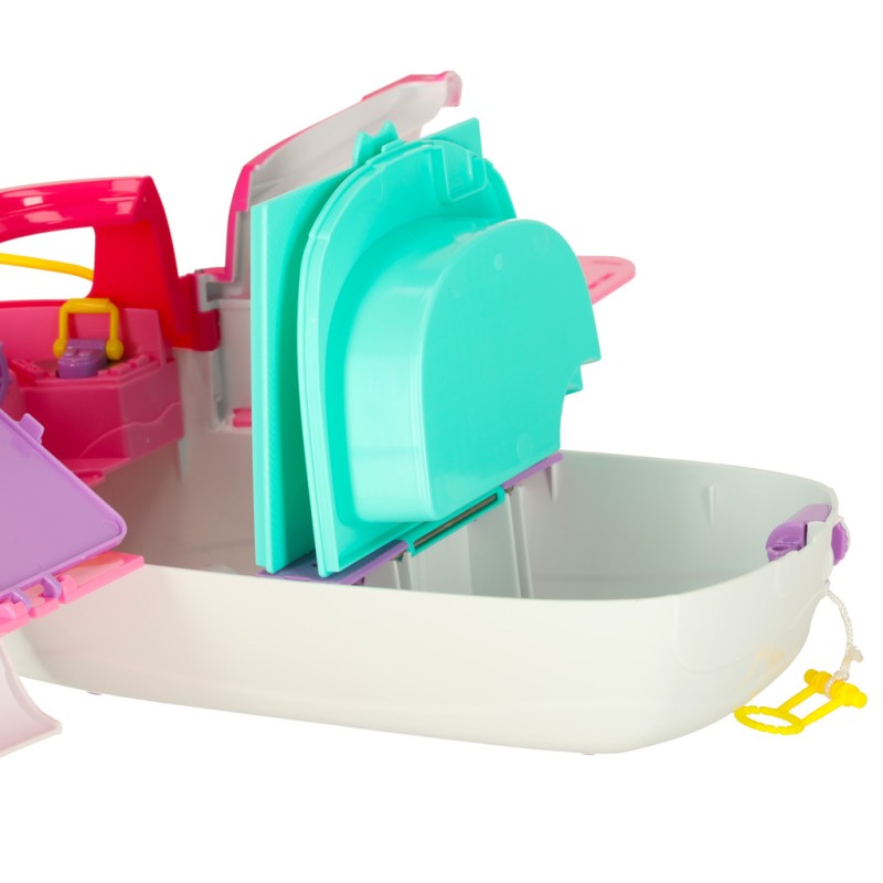 Rozkładana łódź łączy praktyczną funkcjonalność z atrakcyjną, przyciągającą wzrok formą. Jacht i motorówka tworzą harmonijny zestaw, a lalka wraz z akcesoriami wprowadzają dziecko w barwny, pełen pomysłów świat zabawy. Zestaw oferuje wiele różnorodnych scenariuszy, dzięki czemu pozostaje interesujący i inspirujący na długi czas.