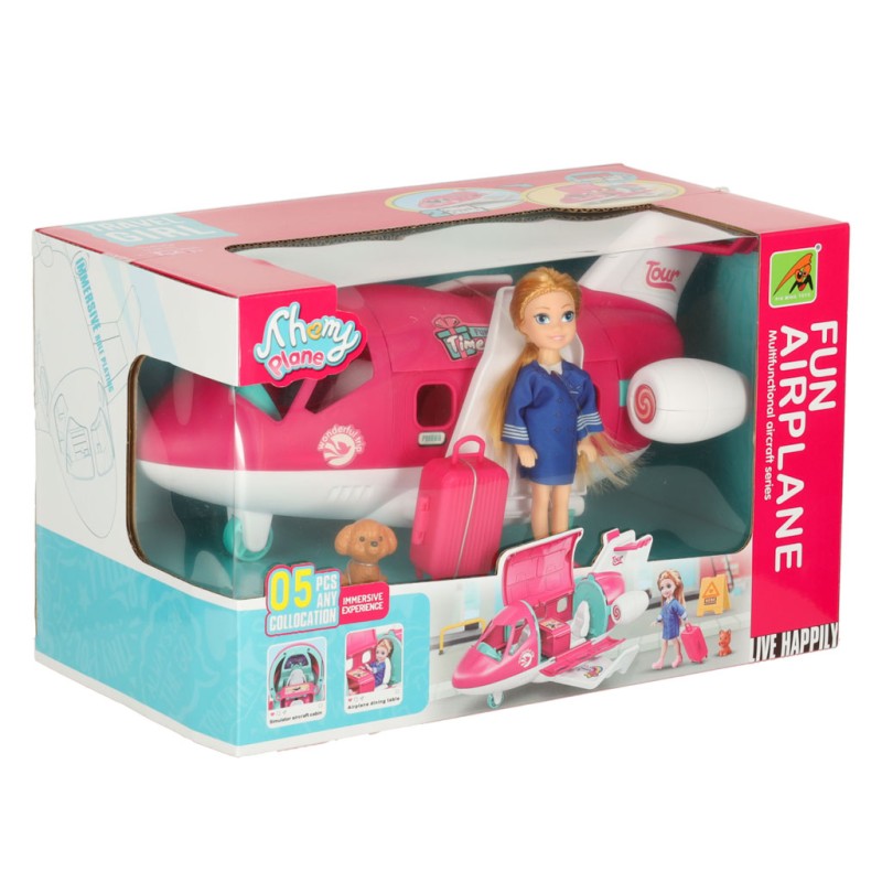 Samolot dla lalek pasażerski 2w1 rozkładany akcesoria różowy
