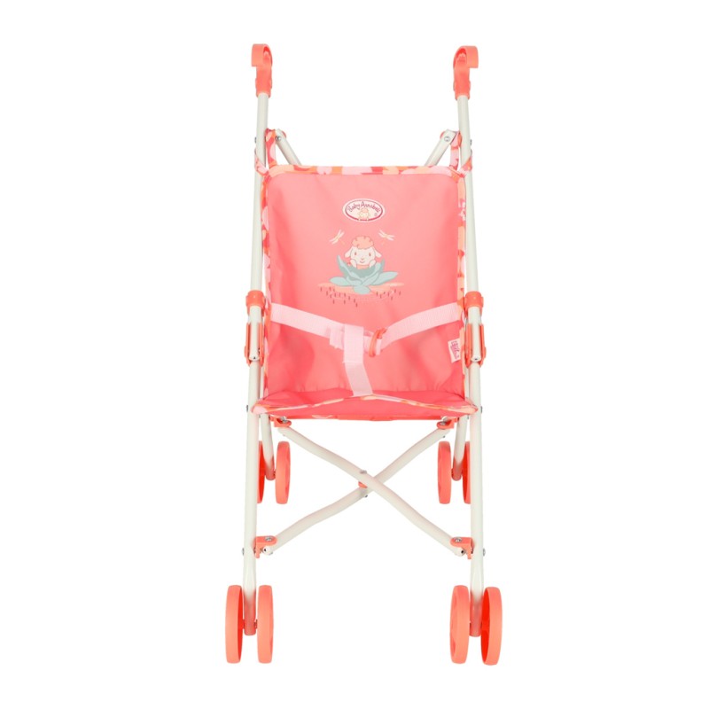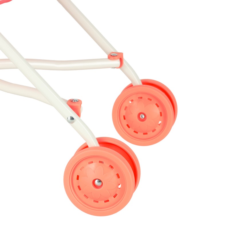 Cztery solidne koła umożliwiają płynne pchanie wózka podczas zabawy, zapewniając przyjemność z każdej chwili ze wspólnych spacerów z lalką. Składana konstrukcja pozwala na szybkie złożenie spacerówki do kompaktowych rozmiarów, co ułatwia jej przechowywanie i transport. Urocza grafika na siedzeniu i pasy bezpieczeństwa dodają zabawce realizmu i sprawiają, że zabawa staje się jeszcze bardziej wciągająca. Wózek nie tylko dostarcza mnóstwo radości, ale również wspomaga rozwój wyobraźni, empatii i umiejętności społecznych dziecka.