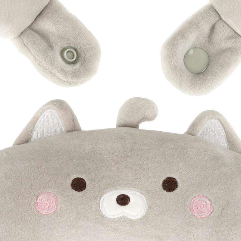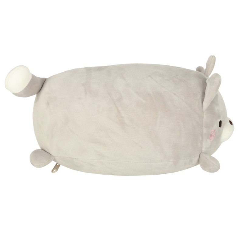 Dla dzieci: 3+. Kolor: szary. Materiał: poliester. Wypełnienie: kulki styropianowe. Funkcja: poduszka i maskotka 2w1. Waga: 187 g. Wymiary maskotki: Wysokość: 14 cm. Szerokość: 18 cm. Długość: 29 cm. Wymiary poduszki: Wysokość: 30 cm. Szerokość:...