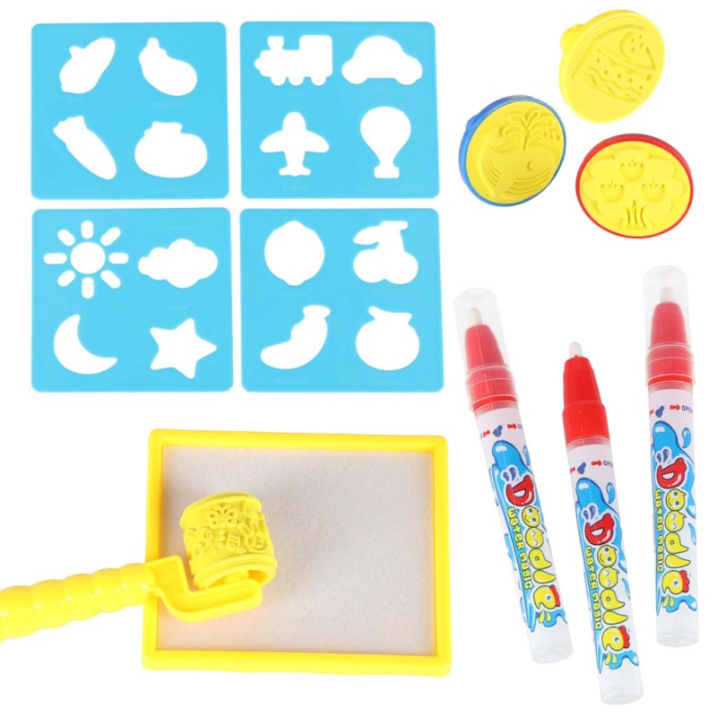 • Zestaw do malowania wodą - pełen dodatków: flamastry wodne, stemple i szablony