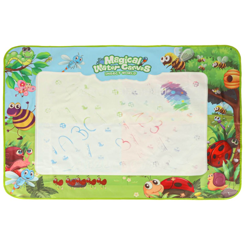 Mata wodna do malowania dla dzieci wykonana z bezpiecznego tworzywa. Zestaw do malowania wodą zawiera szybkoschnącą matę wielokrotnego użytku, niebrudzące pisaki wodne, flamastry i szablony. Umożliwia rysowanie wodą i malowanie na ziemi bez plam i...