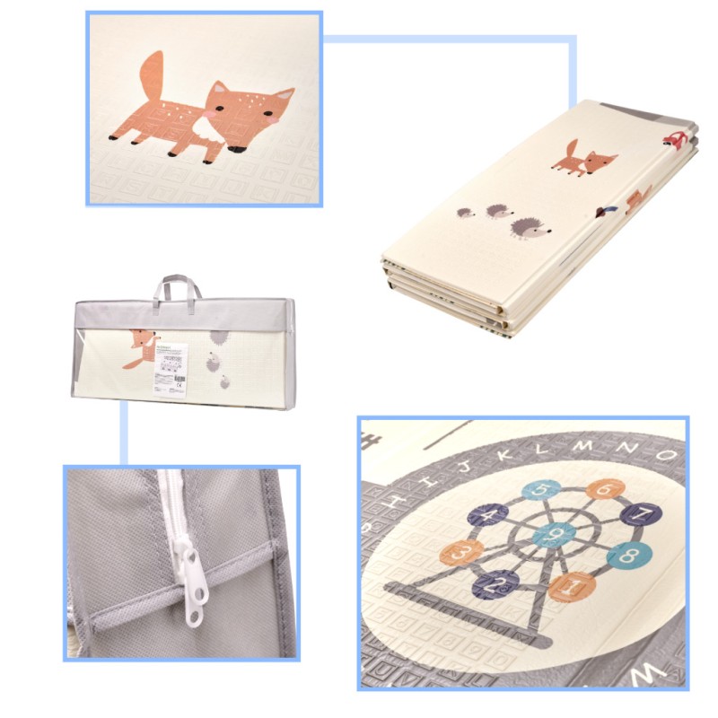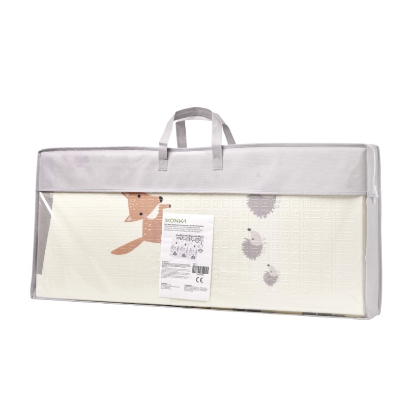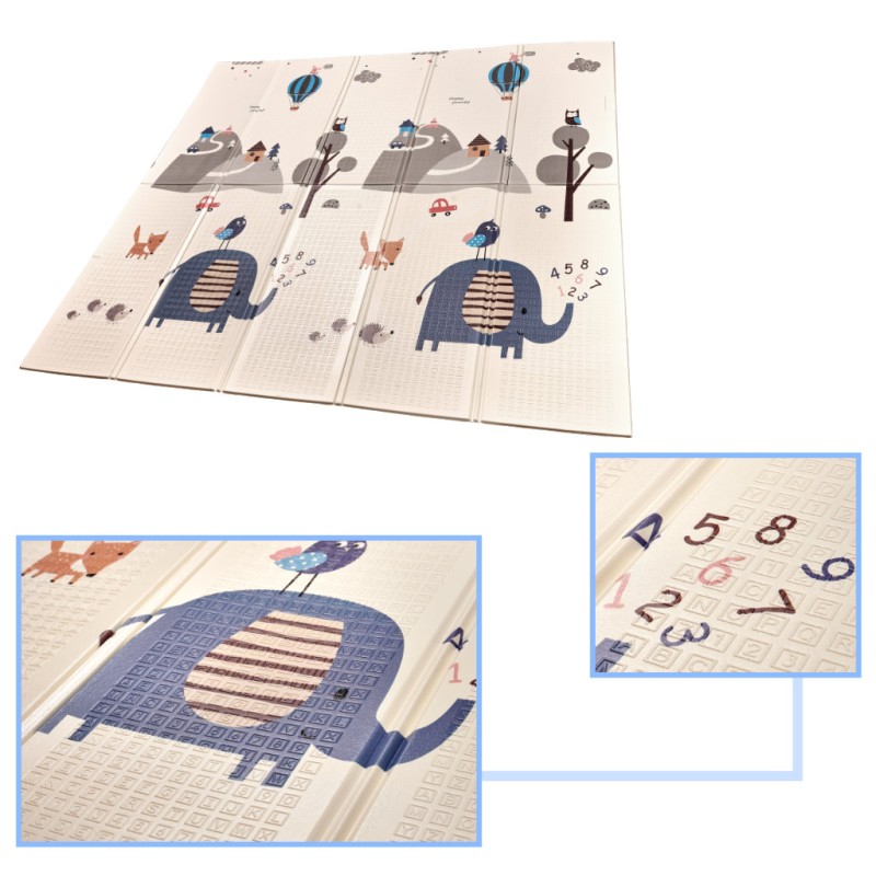 Piankowa mata edukacyjna doskonale sprawdzi się do wyznaczenia miejsca do zabawy, ale także jako dywan w pokoju dziecka. Jest dwustronna – z jednej strony jest pagórki oraz zwierzęta, a z drugiej kręte uliczki idealne do zabawy ulubionymi samochodzikami. Grubość maty wynosząca 1 centymetr zapewnia nie tylko wygodne miejsce do zabawy, ale także ochroni przed zimną podłogą i sprawia, że nauka chodzenia jest bezpieczniejsza. Mata jest wyjątkowo praktyczna – łatwo ją składać i rozkładać, dzięki czemu zajmuje minimalną przestrzeń, kiedy nie jest używana.