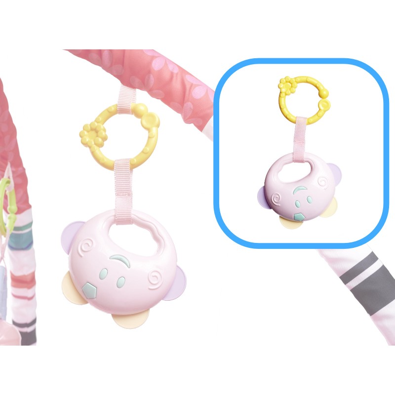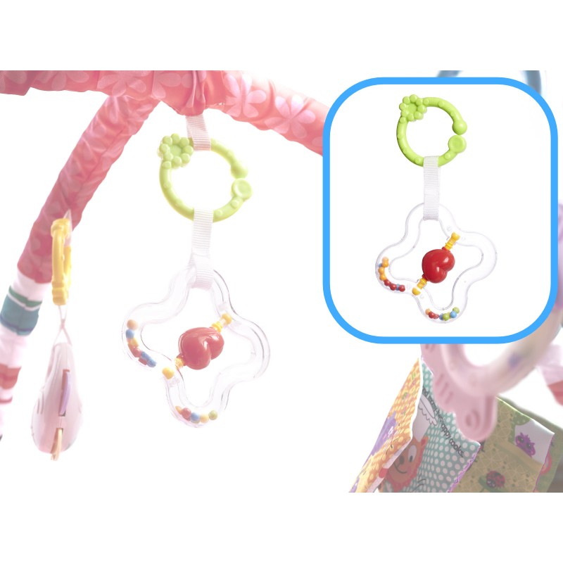 Mata z zabawkami zawieszonymi na pałąkach- kolorowe zabawki zawieszone na pałąku będą przyciągały uwagę maluszka i motywowały do ćwiczenia i wzmacniania mięśni karku, rąk i nóg. Dodatkowo świetnie sprawdzi się podczas pierwszych prób samodzielnego siadania.