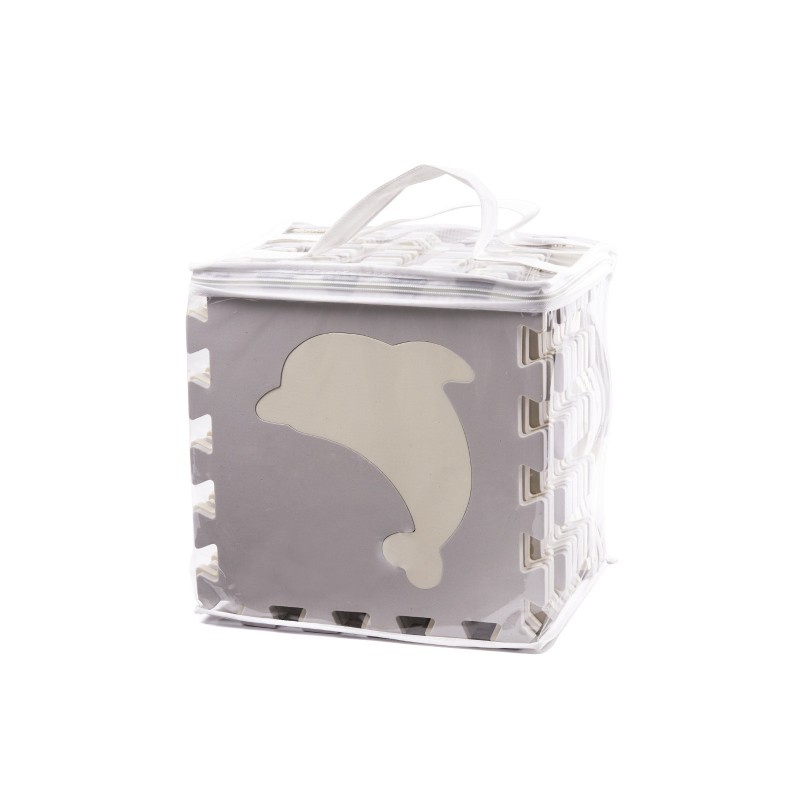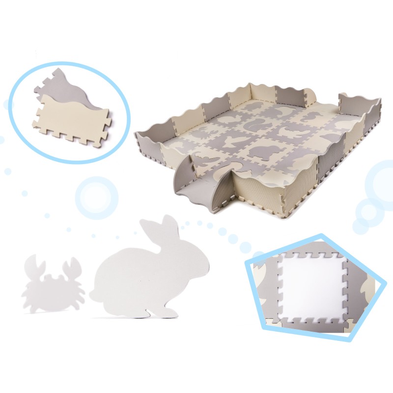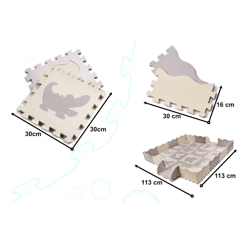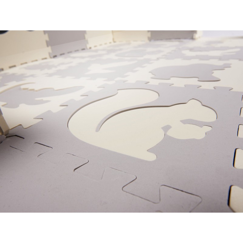 MATA EDUKACYJNA PIANKOWA PUZZLE SZARA ECRU 144 X 144 CM 36 ELEMENTÓW