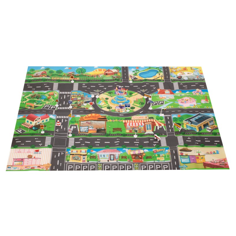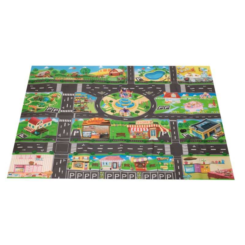 To nie jest zwykła mata edukacyjna. To start do przygody, która zaczyna się jeszcze przed rozpoczęciem zabawy. Na podłodze powstaje miasto z siecią dróg, gdzie każda ulica ma znaczenie, a ulice i znaki drogowe prowadzą do nowych historii. Drogowe miasto tętni ruchem, a znaki drogowe w mieście wyznaczają rytm zabawy. Duża wodoodporna mata sprawia, że przestrzeń zmienia się w pełne akcji miasteczko, gotowe na intensywne zabawy - bez ograniczeń i bez obaw o zabrudzenia.