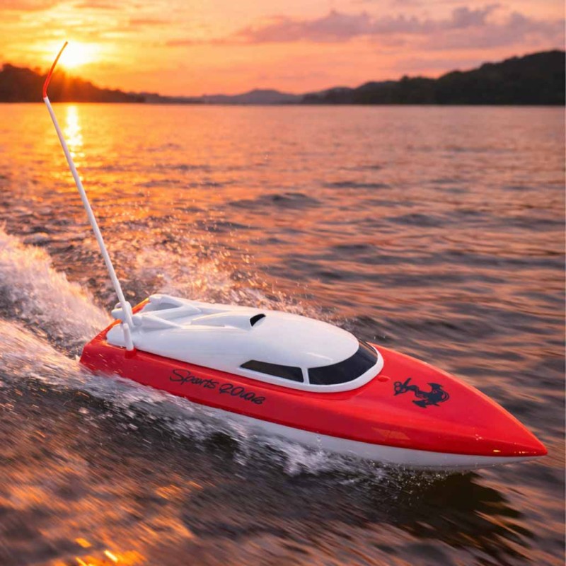 Łodź wyścigowa, zdalnie sterowana to doskonała zabawka dla wielbicieli morskich przygód. Motorówka zasilana jest na akumulator Ni-Cd 3,6V 500mAh. Model zwrotny wykonany z solidnego materiału.
