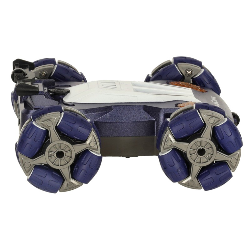 Samochód porusza się w czterech kierunkach, co sprawia, że jest w stanie pokonać nawet najbardziej kręte trasy. Podwójne koła nie tylko nadają pojazdowi nowoczesny i stylowy wygląd, ale również zapewniają doskonałą przyczepność na różnych nawierzchniach. Lampy oraz wydech z efektem dymu (pary wodnej) sprawiają, że zabawa staje się jeszcze bardziej ekscytująca.
