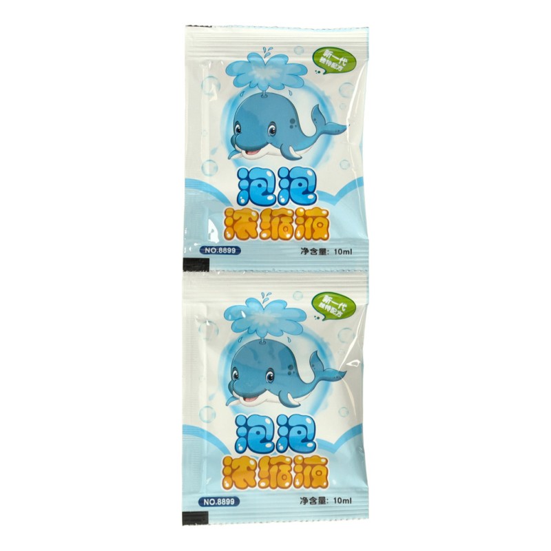 W zestawie znajdziesz pojemnik na płyn do baniek, który należy zamontować w maszynie, a także dwie saszetki z przygotowanym płynem. Ten zapas starczy na długie godziny zabawy!