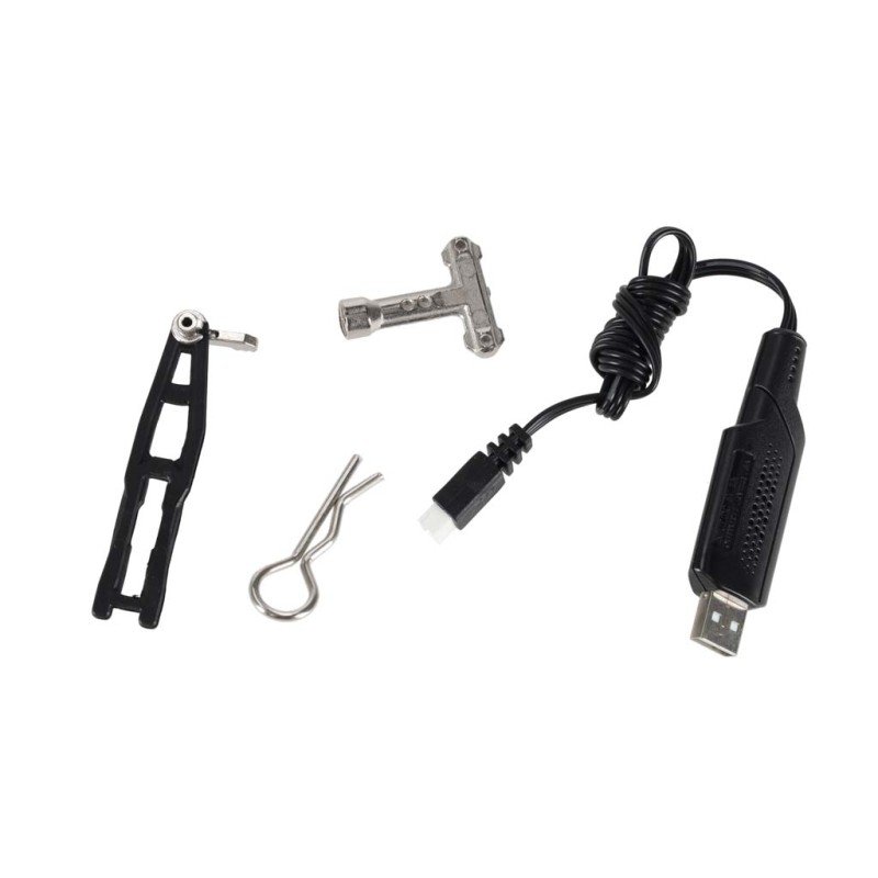 Akumulator modelu o pojemności 1000 mAh naładujesz przy użyciu dołączonego do zestawu przewodu USB. Taka ilość energii to gwarancja dobrej i długiej zabawy! Jego napięcie wynosi 7.4 V, co daje wystarczająco mocy, aby bezszczotkowy silnik napędził model aż do 52 km/h!