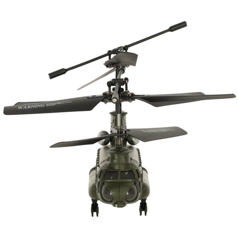 Materiał: Tworzywo sztuczne. Kolor: Czarny, ciemnyzielony. Przewód ładujący: 84cm. Złącze: USB-A Zasilanie: Akumulator3.7 V 150 mAh. Waga: 47 g . Joystoick działa na baterie: 4 x AAA (brak w zestawie). Długość helikoptera: 16,5 cm. Szerokość helikoptera