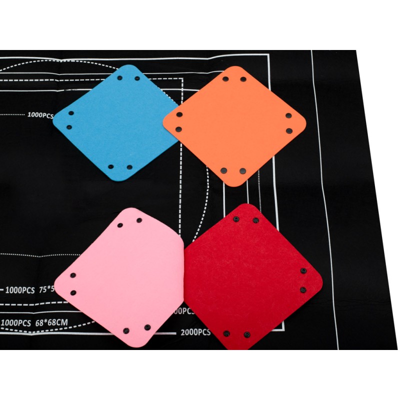 Mata w całości została wykonana z poliestru strukturą przypominającego filc. Posiada białe ramki, które pokazują jak dużą powierzchnię zajmie ułożony wzór.