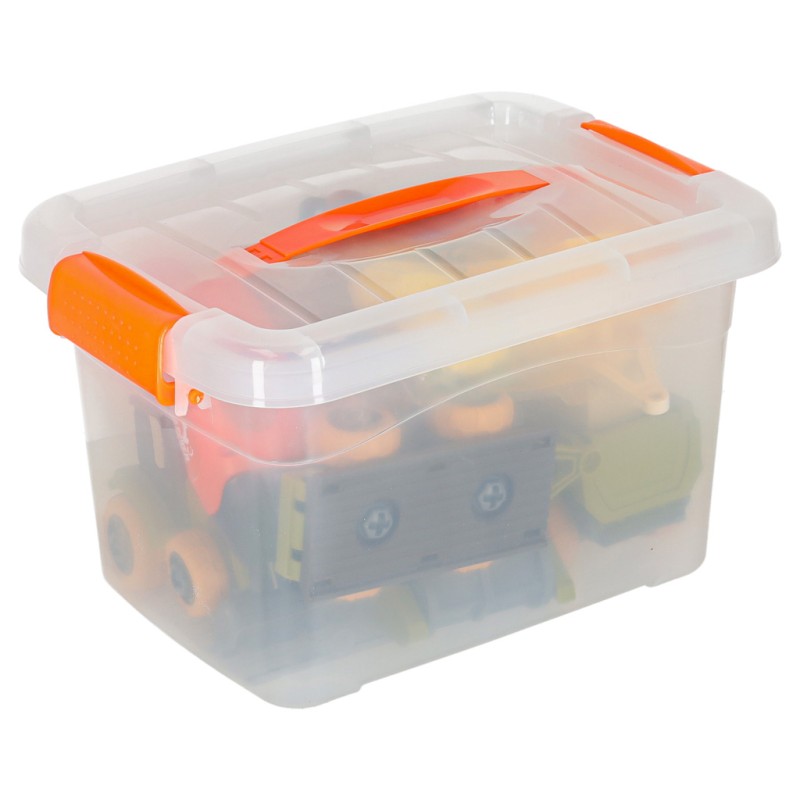 Wszystkie elementy zestawu zapakowane są w plastikowym pojemniku, który ułatwi przechowywanie wszystkiego w jednym miejscu. Dodatkowo pojemnik został wyposażony w praktyczną rączkę, która znacznie ułatwi przenoszenie zabawki w dowolne miejsce.