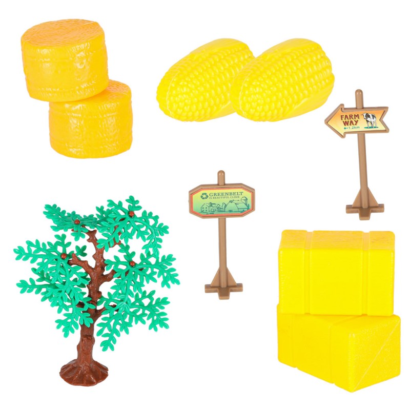 Skrzynka pełna akcesoriów, które są potrzebne każdemu rolnikowi. Kilka rodzajów pojazdów, zwierzęta, plony, zagrody – wszystko się znajdzie!