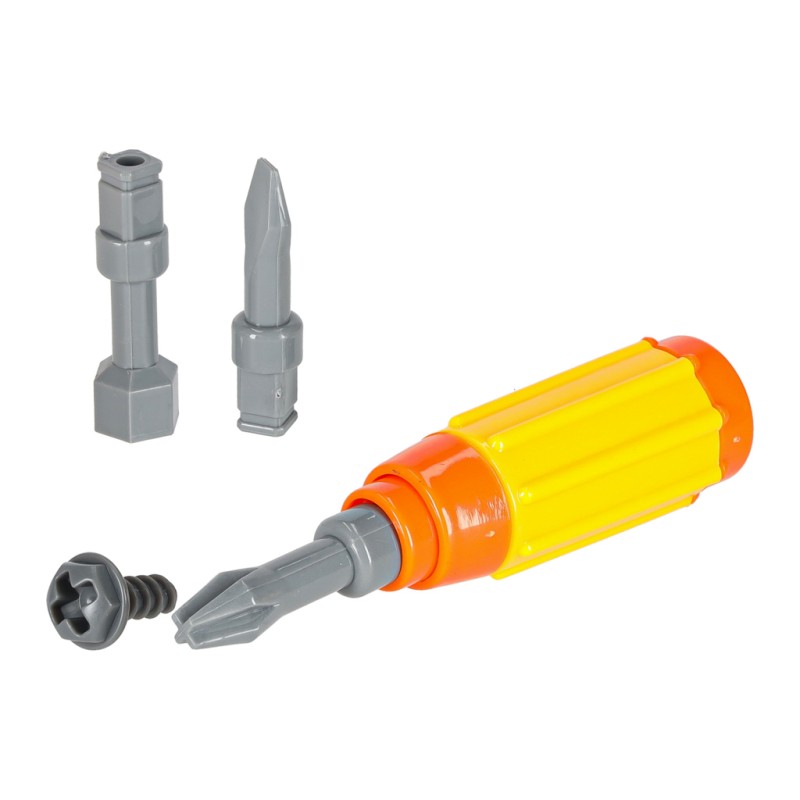 Ale to nie koniec! W zestawie zawarty jest również zabawkowy śrubokręt i wiertarka na baterie. Koło traktora uszkodziło się podczas pracy na polu? Trzeba je wymienić? Nie ma sprawy! Za pomocą śrubokręta wymiana będzie bezproblemowa.