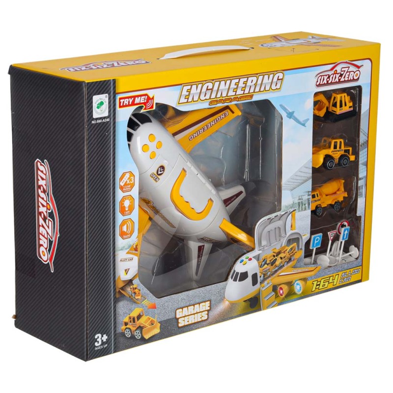 Duży samolot, który na swoim pokładzie może przetransportować dołączone do zestawu auta i znaki.