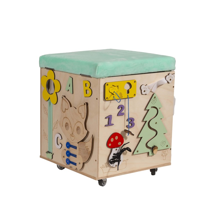 Puf manipulacyjny z siedziskiem i kółeczkami jest idealnym rozwiązaniem dla każdego rodzica. Produkt zadba o prawidłowy rozwój dziecka, a jednoczęsnie pomieści ulubione zabawki malucha.Wym. prod. 31x31x40,5cm
