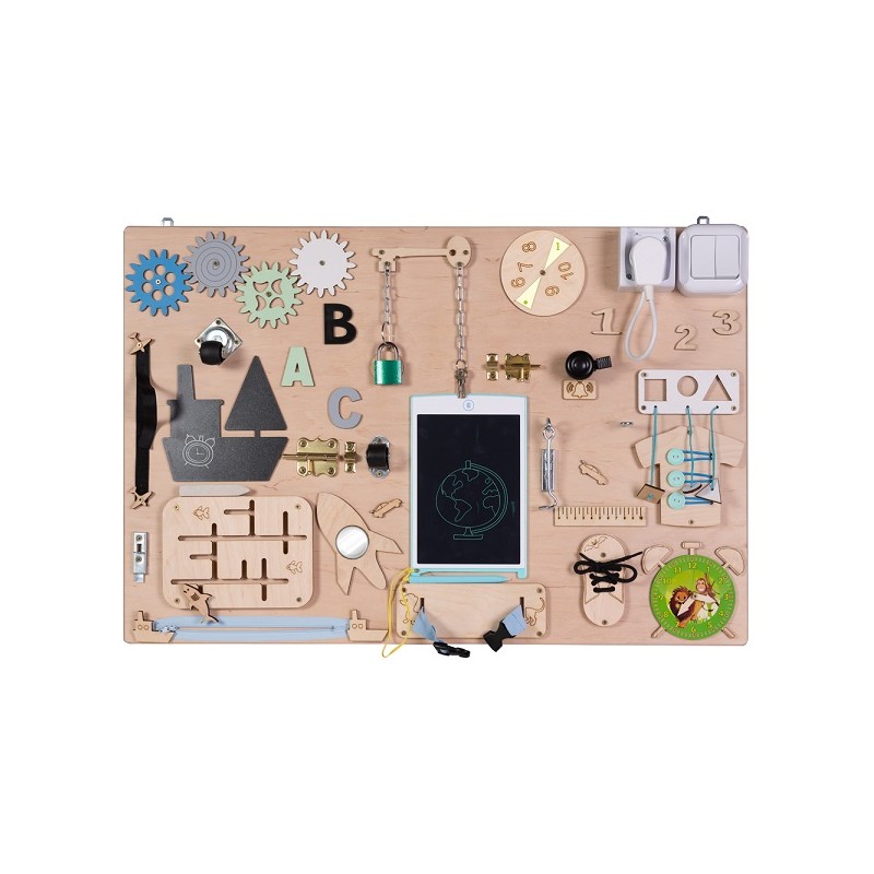 Ale czym dokładnie jest tablica manipulacyjna? To produkt, który posiada wiele różnorodnych elementów, najczęściej takich codziennego użytku – między innymi: gniazdko z wtyczką, włącznik światła, dzwonek rowerowy i wiele innych!