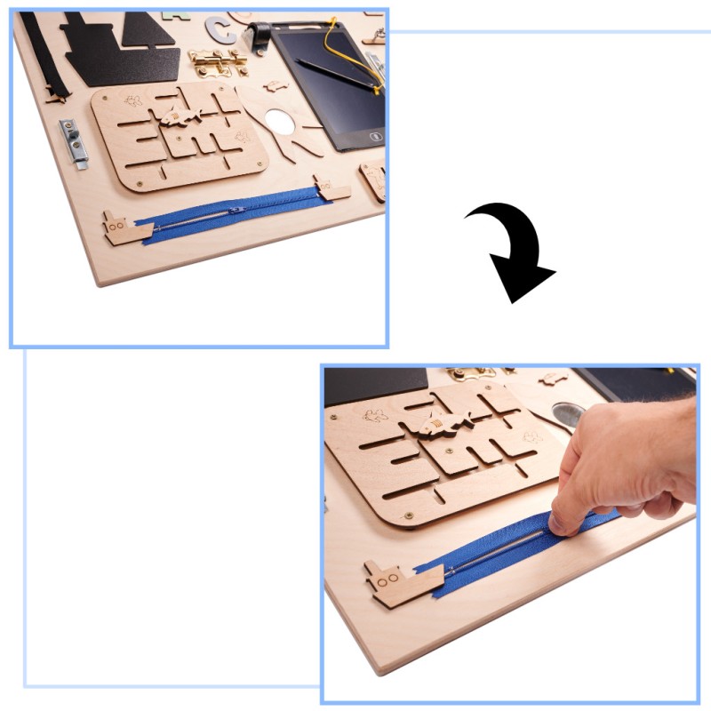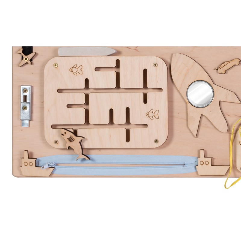 TABLICA MANIPULACYJNA DREWNIANA SENSORYCZNA 75X50CM