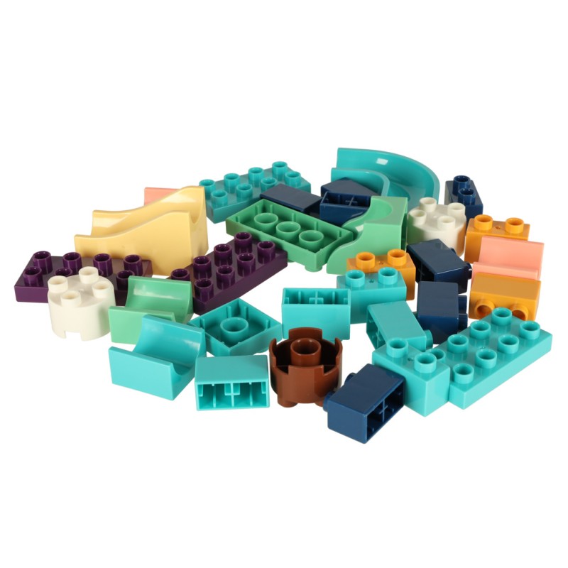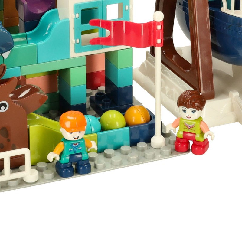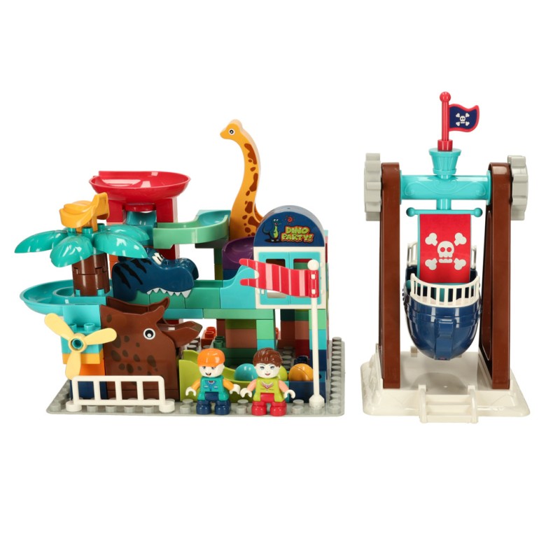 Zestaw składa się z 113 klocków, z których dziecko może zbudować własny tor kulkowy! Elementy można dowolnie łączyć, tworząc samodzielnie wymyślone trasy dla kulek, lub zaczerpnąć inspirację z pudełka i zbudować tor jak ze zdjęcia. Do zestawu dołączone są trzy kulki w różnych kolorach, które będą toczyć się po stworzonych torach.