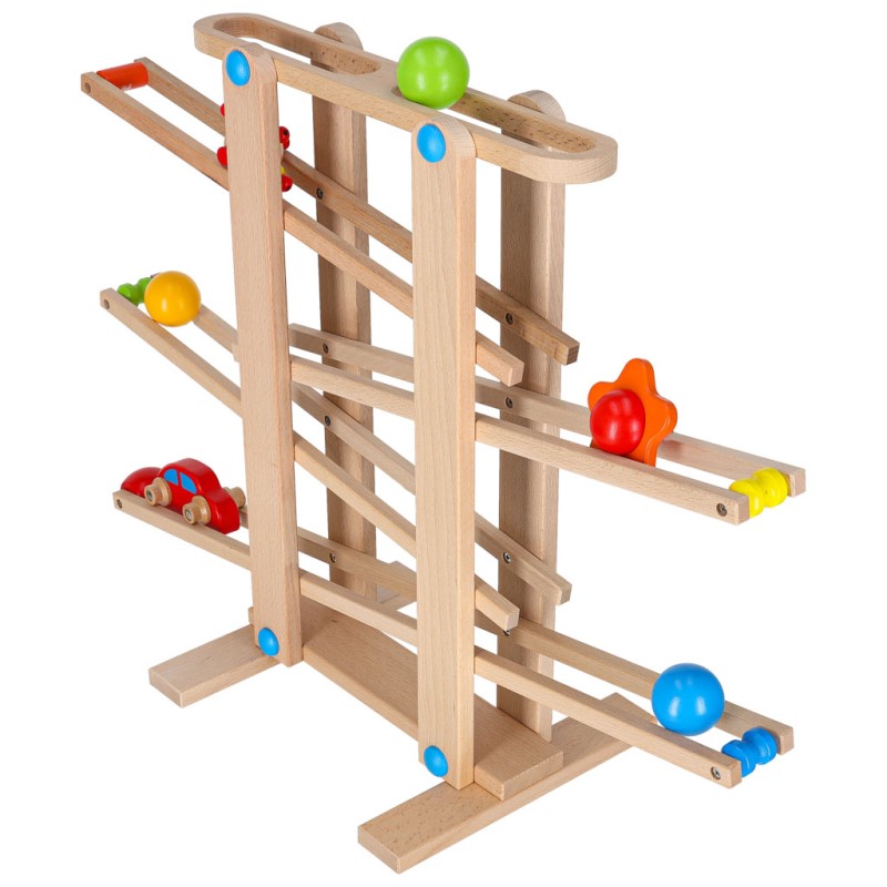 Fantastyczny drewniany tor dla kulek i samochodów zachwyci każdego małego odkrywcę.