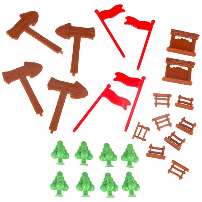 ● Ogrodzenia i oznaczenia: płotki (8 szt.), furtki (2 szt.), flagi (4 szt.), strzałki kierunku (4 szt.)