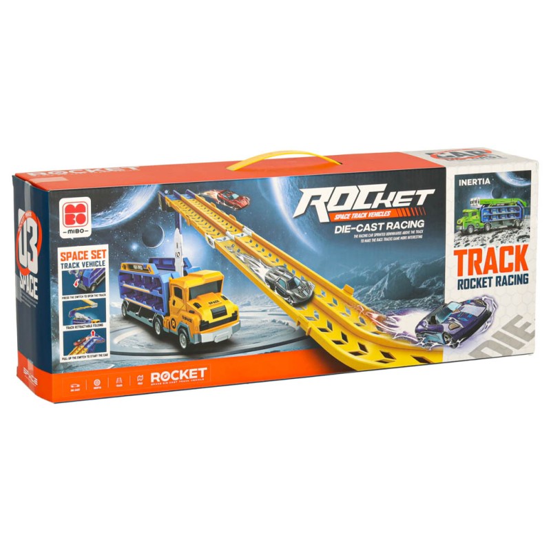 Wiek: 3+. Wymiary zbudowanego toru: 130 cm x 56 cm x 94,5 cm. Wymiary opakowania: 67 cm x 43 cm x 7 cm.