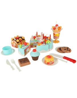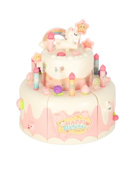 Urodzinowy tort do krojenia zapakowany w eleganckie opakowanie ze wstążką. Ma interaktywne elementy - świeci, obraca się i gra muzykę. W zestawie także świeczki, zastawa oraz nakrycia głowy. Wymiary opakowania: 30 cm x 24 cm x 24 cm