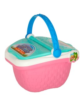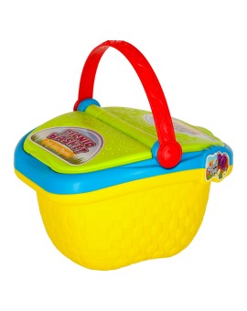 Wiek dziecka: 3+. Kolorystyka: żółty, niebieski, zielony, czerwony. Materiał: trwałe tworzywo sztuczne (cerata: elastyczna, lekko gumowana). Wymiary kosza: Góra: 19 × 24 cm. Spód: 17 × 14 cm. Wysokość: 14,7 cm. Z rączką: 24 cm. Rączka: 9,5 cm....