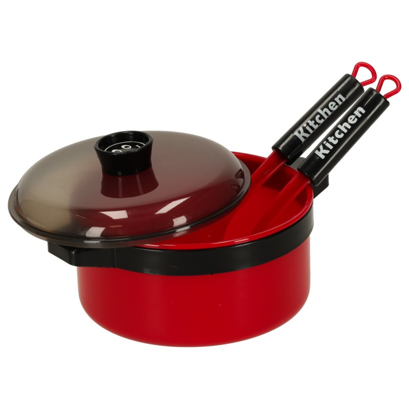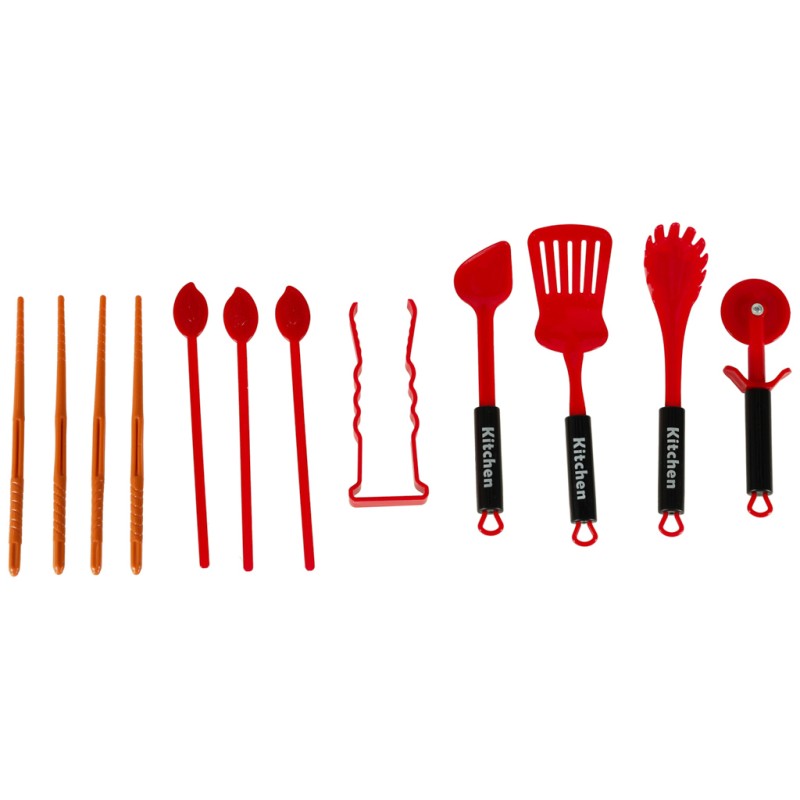 Zabawki kuchenne dla dzieci - zestaw 35 akcesoriów do kreatywnej zabawy w gotowanie. Rozwija wyobraźnię, pobudza zmysł motoryki i rozbudza apetyt także u niejadków. Wymiary: 28 cm x 23 cm x 18 cm, kolor: czerwony