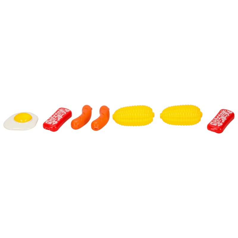 Akcesoria do grillowania (3 patyczki do szaszłyków, jajko, 2 kawałki mięsa, 2 kiełbaski, 2 kolby kukurydzy, 2 sosy)