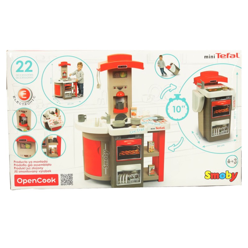 Elektroniczna, składana Kuchnia mini Tefal OpenCook 312202 to doskonały zestaw do zabawy w gotowanie. Kuchnia posiada nowoczesną stylistykę i kolorystykę. Zestaw składa się z niezbędnego wyposażenia i funkcji, które sprawiają, że zabawa staje się odwzorowaniem czynności, które dzieci obserwują w życiu codziennym i tak chętnie naśladują.