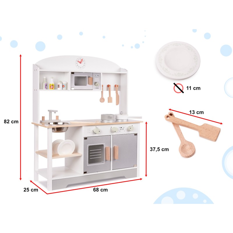 Z pewnością widziałeś/łaś już wiele modeli kuchni dla dzieci. To, co wyróżnia ten model, to możliwie najdokładniejsze odwzorowanie prawdziwej kuchni z zachowaniem bezpieczeństwa Twojego dziecka.