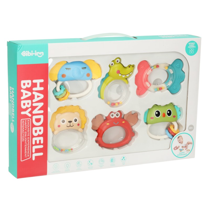 Zestaw 6 gryzaków i grzechotek: