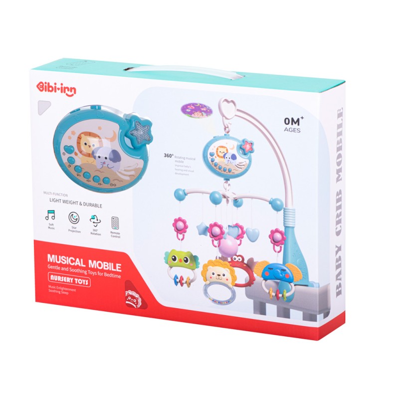 Karuzela z projektorem gwiazd i pilotem. Posiada aż 40 różnych, spokojnych melodii. Kolorowe zawieszki-zwierzaki z pewnością zaciekawią dziecko. Zasilana na baterie: 3x AA (brak w zestawie). Kolor: różowy. Wym. ramion: 18,5x18x5cm. Wys. pałąka: 43cm.