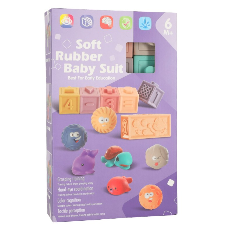 KLOCKI PIŁKI SENSORYCZNE MIĘKKIE EDUKACYJNE 15 ELEMENTÓW