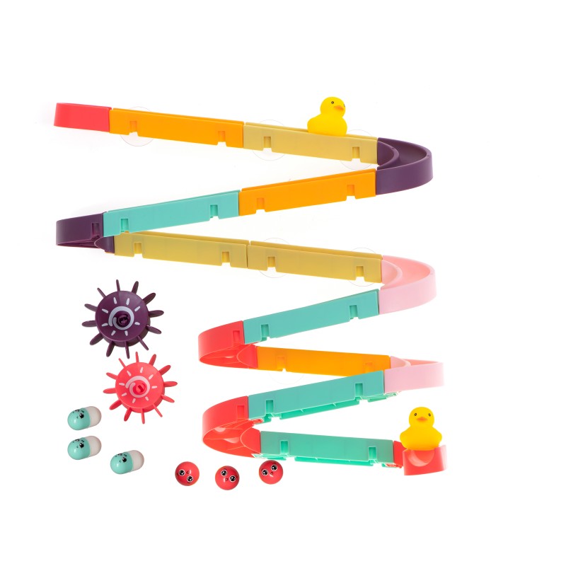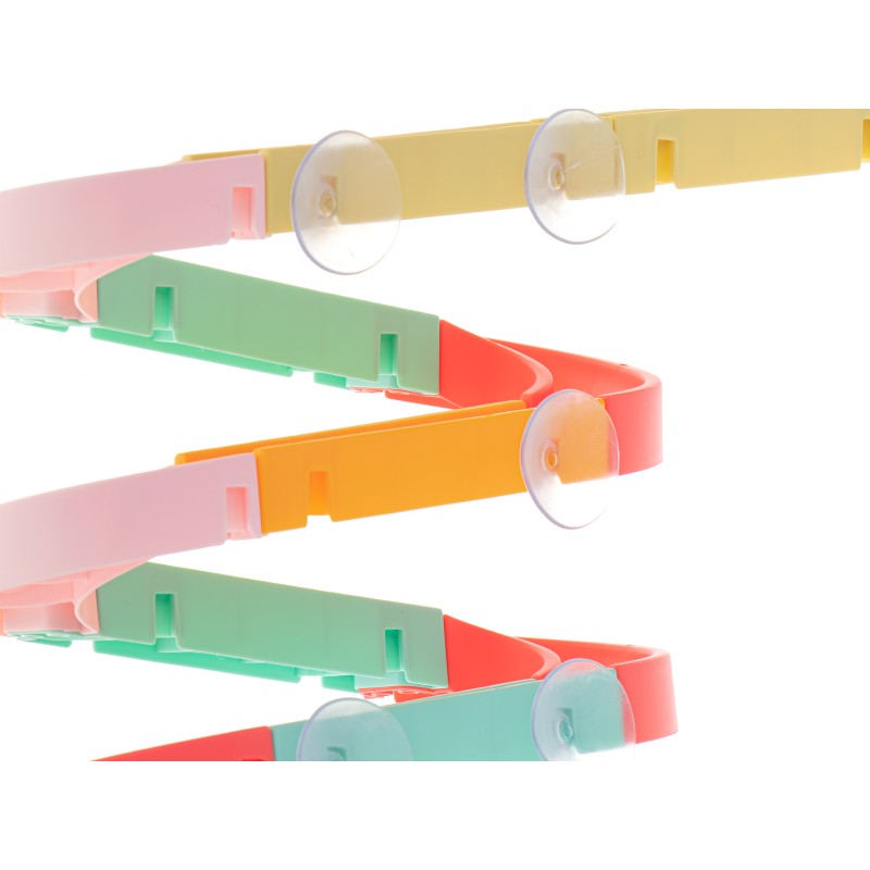 Do zabawki dołączono przyssawki, które ułatwią przymocowanie toru do glazury lub wanny.