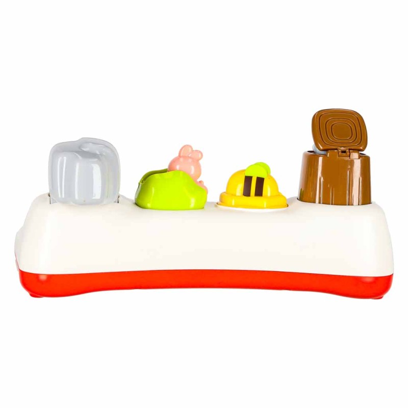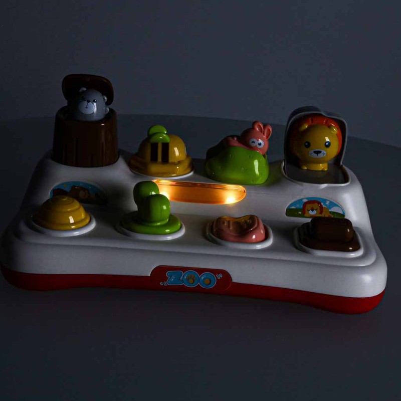 Zabawka powstała w duchu edukacyjnym Montessori. Jako interaktywna zabawka wyposażona jest w cztery przyciski, z których każdy uruchamia inny mechanizm działania. Wyskakujące kolorowe zwierzątka wspierają rozwój motoryki małej, jednocześnie wprowadzając zabawę w nurcie STEM poprzez ruch, logiczne zależności i pierwsze doświadczenia z mechaniką działania. To wciągająca zabawa, doskonały trening i wyjątkowa zabawka, która zapewni maluchowi radość i idealnie sprawdzi się jako prezent.