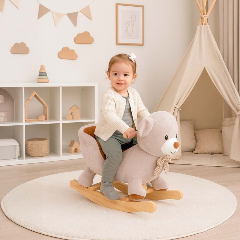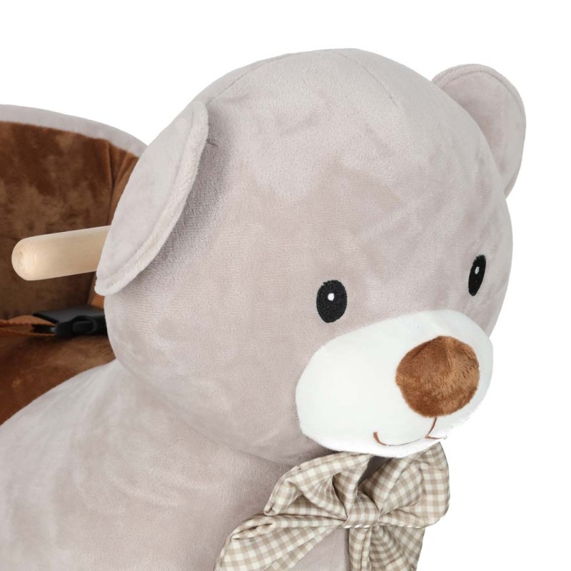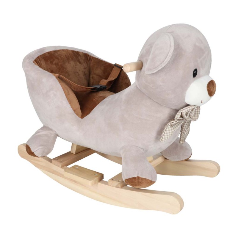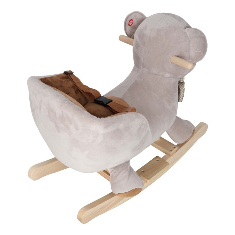 Bujany miś na biegunach będzie towarzyszył dziecku od 1 roku życia. Szerokie siedzisko oraz miękkie obicie zachęcają najmłodszych do zabawy. W bujaku można posadzić dziecko lub pozwolić mu samodzielnie wsiąść na misia. Pasy bezpieczeństwa chronią malucha przed wypadnięciem z bujaka.