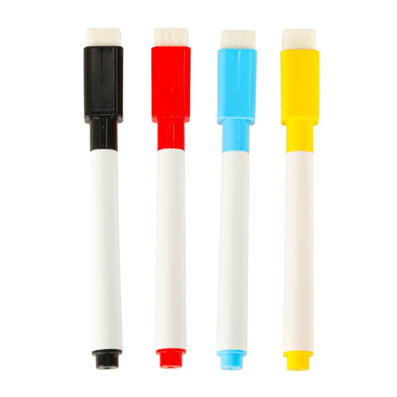 • 4 kolorowe markery suchościeralne ze ścierakiem